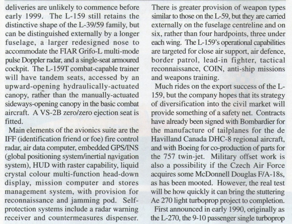 Aero Vodochody L-39 Albatros Article 30/06/202530/10/2025Terry Back to Aero Vodochody L-39 Albatros July 1997 Share this: Click to share on X (Opens in new window) X Click to share on Facebook (Opens in new window) Facebook Like Loading... Related