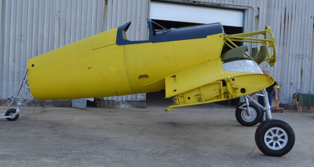 Precision Industrial Finishing of Shelton, CT has graciously supplied the correct paint, and to date have performed much of the required painting. The final paint for 92460 will wear is the overall dark blue, factory fresh paint scheme that she left the Goodyear factory with back in 1945. Since CASC’s museum hangar is literally across the street from the factory that birthed the first Corsair, a “factory fresh” Corsair is quite fitting tribute to those who designed, built, and flew these magnificent aircraft so many years ago.