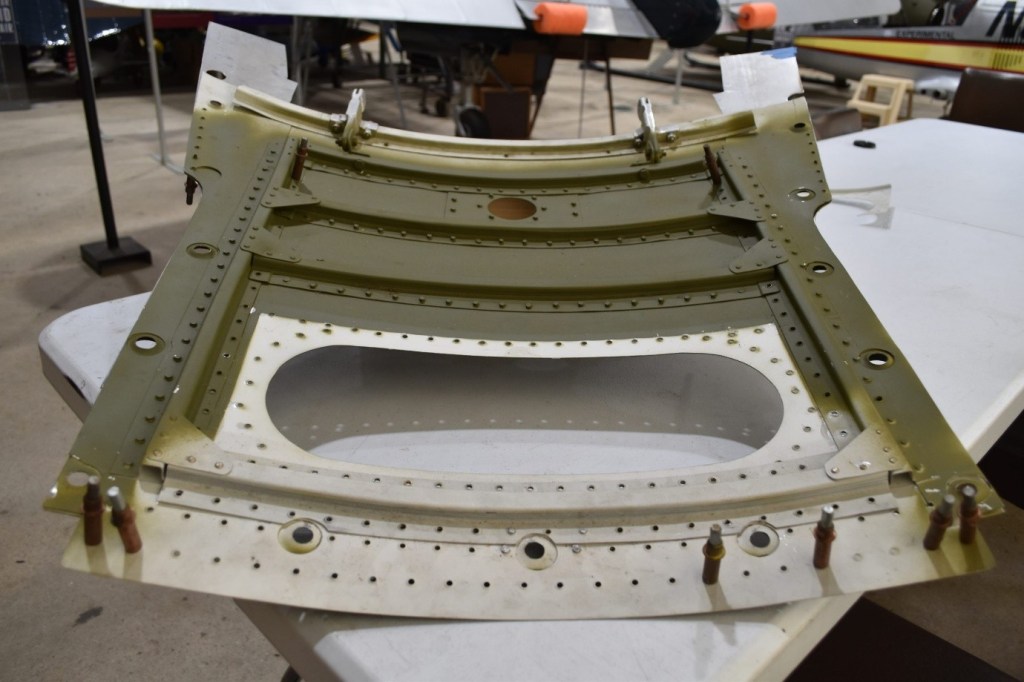 Help started to flow from all over the globe. Gary Dunn, of the Classic Jet Fighters Museum in Australia, visited several times, helping the crew fabricate special tooling to allow CASC to manufacture hat channels on their shop’s rolling machine. A video team was sent by Goodyear to interview Dick Steele, one of the Corsair restoration volunteers. Dick was a WWII Corsair pilot and after the short documentary was finished, Mark Corvino mention that, “It’s too bad our ‘Goodyear’ Corsair has Michelin tires on it.” “We can’t have that!” was the very instant response from the Goodyear rep. Shortly after that, brand new, Goodyear tires arrived courtesy of the company that built 92460!