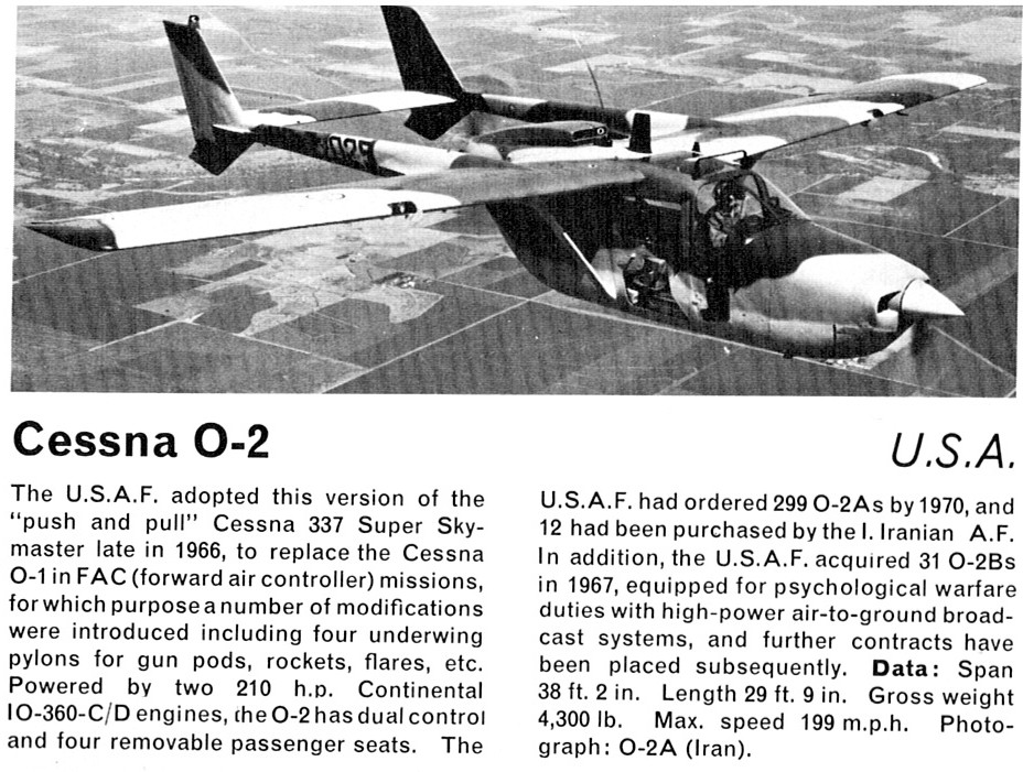 Cessna CE-337 Skymaster / O-2 Article 04/07/2025Terry Back to Cessna CE-337 Skymaster / O-2 Share this: Click to share on X (Opens in new window) X Click to share on Facebook (Opens in new window) Facebook Like Loading... Related