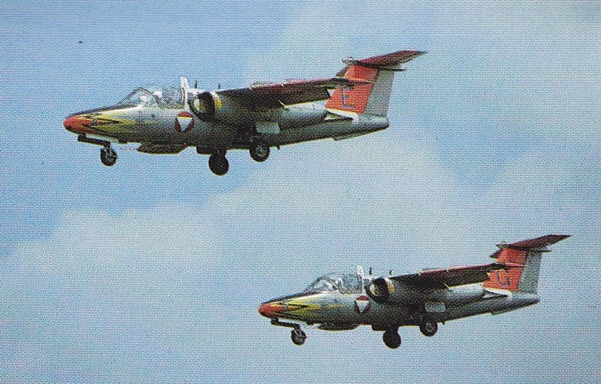 SAAB 105 Gallery 18/07/2025Terry Back to SAAB 105 SAAB 105ÖE of Austria Air Force Silver Birds team, Greenham Common 29 zjuly 1976 for International Air Tattoo SAAB 105ÖE of Austria Air Force Silver Birds team 1976 SAAB 105ÖE of Austria Air Force Karo AS team Share this: Click to share on X (Opens in new window) X Click to share on Facebook (Opens in new window) Facebook Like Loading... Related