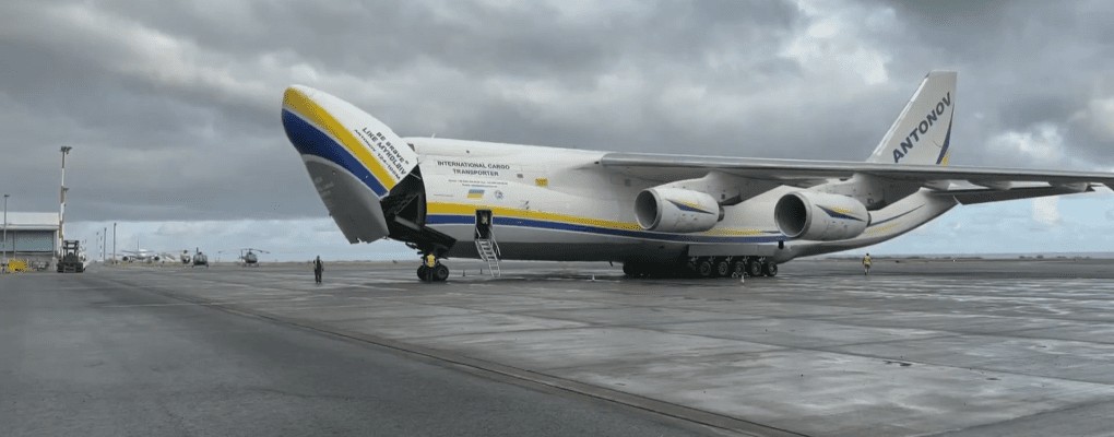 Ukrainian Aircraft Antonov An-124 Delivers Super Puma Helicopter to Réunion Island