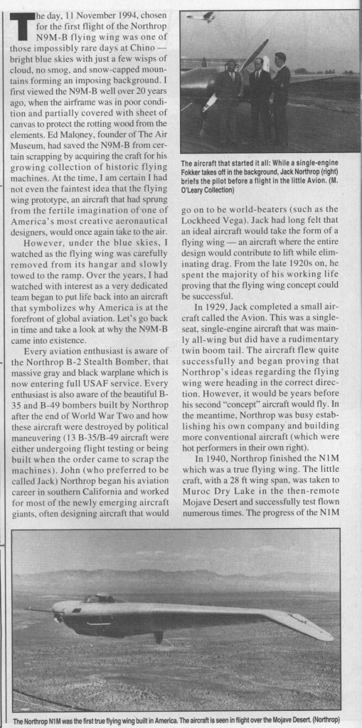 Northrop N9M Article 12/08/2025Terry Back to Northrop N9M February 1995 Share this: Share on X (Opens in new window) X Share on Facebook (Opens in new window) Facebook Like Loading... Related