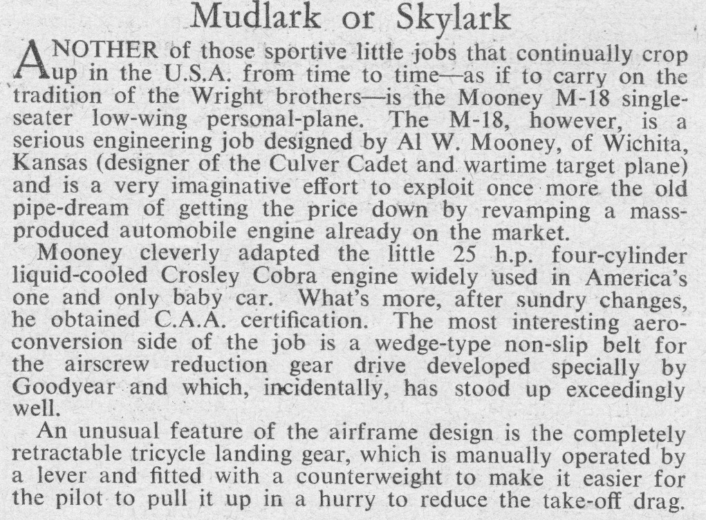 Mooney M.18 Mite Article 27/08/2025Terry Back to Mooney M.18 Mite February 1949 Share this: Click to share on X (Opens in new window) X Click to share on Facebook (Opens in new window) Facebook Like Loading... Related