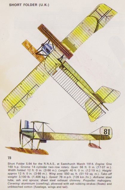 The 1913 Short No. S64 tractor seaplane, with folding wings, was designed and built by Short Bros. in the UK.
