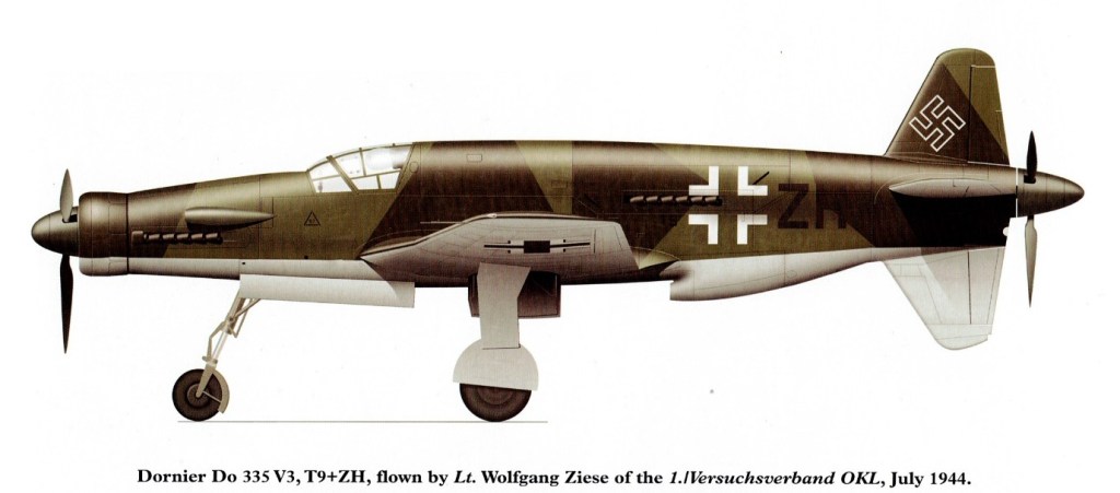 Dornier Do-335 Pfiel Gallery 16/10/202522/10/2025Terry Back to Dornier Do-335 Pfiel Do 335 V3 T9+ZH delivered to 1./Versuchsverband OKL and test flown by Lt. Wolfgang Ziese 26 November 1943 Do 335 V3 Do 335 ejector seat Do 335 V3 Do 335 V3 Rb 50/30 camera fuselage mounted in Do 335 V3 Do 335 V3 forward DB 603A Share this: Click to share on X (Opens in new window) X Click to share on Facebook (Opens in new window) Facebook Like Loading... Related