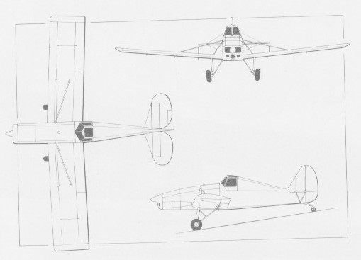 The aircraft G300 was being developed as an agricultural spraying aircraft. A single engine, low wing monoplane, the G300 has a 600 kg capacity spraying tank.
