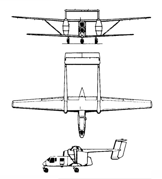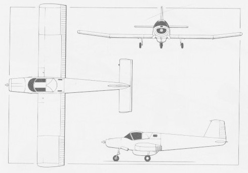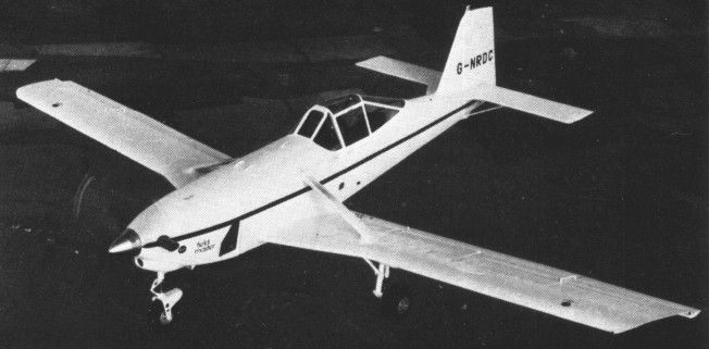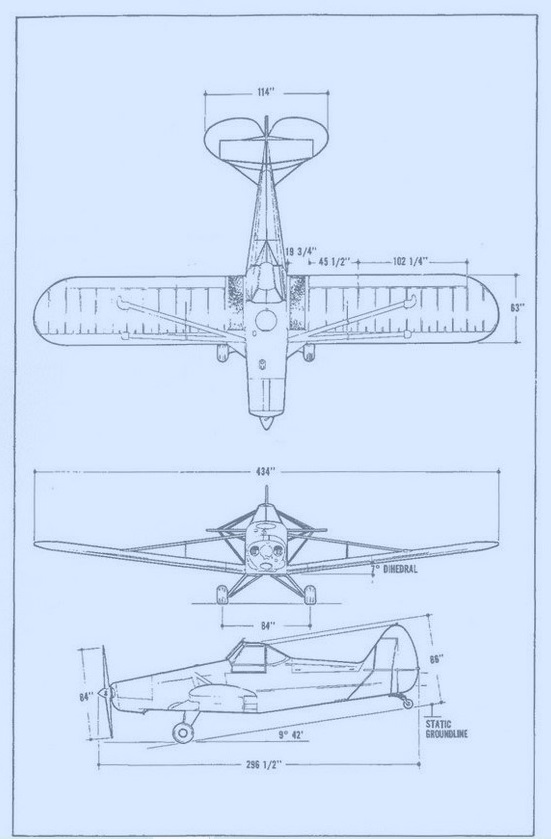 All metal semi monocoque construction, comprising of frames and longerons covered by pre-formed aluminium alloy skins. Wing single spar cantilever construction with sheetmetal ribs covered by pre-formed aluminium alloy skins with the centre wing having no dihedral and outer with 8 degree dihedral. Dual side by side controls. Fixed tricycle landing gear with a wide track and long stroke oleos designed for rough fields and providing a soft ride. Rear mounted hopper independent of the fuselage. Three-blade Hartzell fully reversible prop. Superb visibility with the cockpit forward of the wing and hopper to the rear rather than in front. No handling vices. Cockpit environmental structure stressed to 25g.