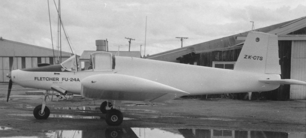 In August 1962, N6507C, in the United States, had the hopper removed and was fitted with dual controls, and also with four passenger seats and windows. When offered for sale it was bought by James Aviation Ltd and in February 1963 was in service as ZK-CCT, the first dual-controlled training Fletcher topdresser. All dual control models being designated FU-24A.