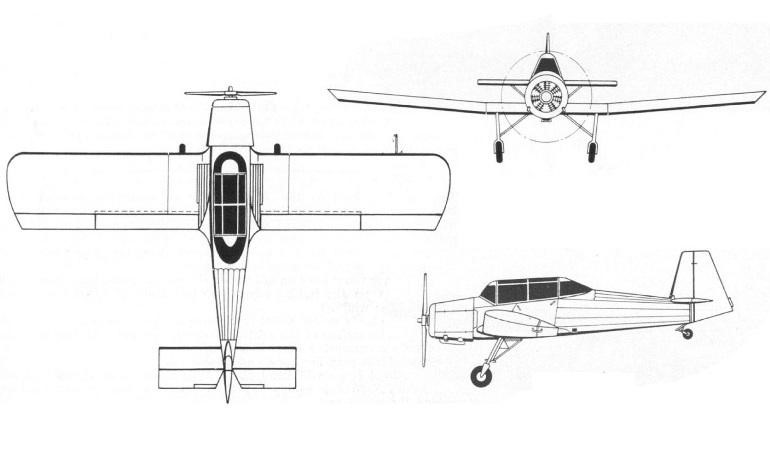 The propulsion was provided by an Ivchenko AI-14 RF, a single row air-cooled 9-cylinder radial capable of delivering 300 hp (221 kW), located at the apex of the front fuselage contained in a NACA cowling and combined with a three-blade propeller with fixed pitch. It was with fixed, tailwheel undercarriage.