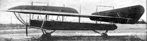 A 1920 experimental single place, open cockpit mid-wing monoplane with wings mounted in a folded-back manner above two outboard 7′ propellers, shaft-driven by a 90hp Maximotor (later replaced by 300hp Hisso).