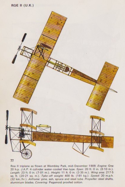 After A.V.Roe moved his entire operation back to Brooklands, he constructed the first aircraft to be built by the company; the Roe II Triplane, named Mercury. It was designed by Alliott Verdon Roe as a sturdier development of his wood-and-paper Roe I Triplane.