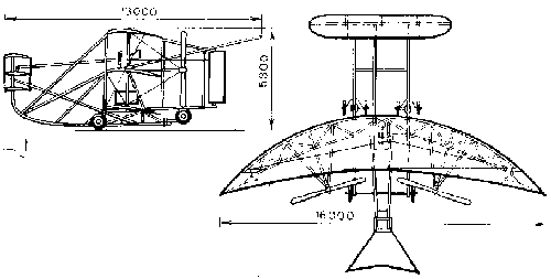 Designed by a collective [Аэроплан АПВ (Коллективный)] in 1909 under Alexander Petrovich Vernander (Александр Петрович ВЕРНАНДЕР – 1844-1918), professor of the Military Academy of Engineering, then second chief of the engineering bureau in Gatchina. Among the seven aircraft constructed in Gatchina one was christened „ласточку“ – swallow – a triplane that followed the Wright design but with curved wings, its propulsion consisting of a 25 hp REP engine, that drove two inward slanted propellers via bevel gear, to centre the air stream onto the rudder’s sides. Construction began in St. Petersburg in 1909, but the machine was not completed when construction ended in 1910.