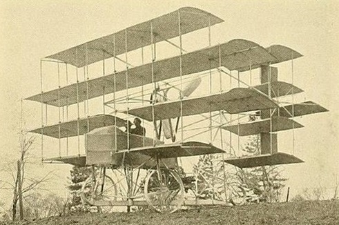 The 1910 Jacobs Multiplane [also identified as the Jacobs-Emerson multiplane] was the creation of Henry William Jacobs of Atchison, Kansas. It had quadruplane wings and tail and two engines, each driving a propeller.