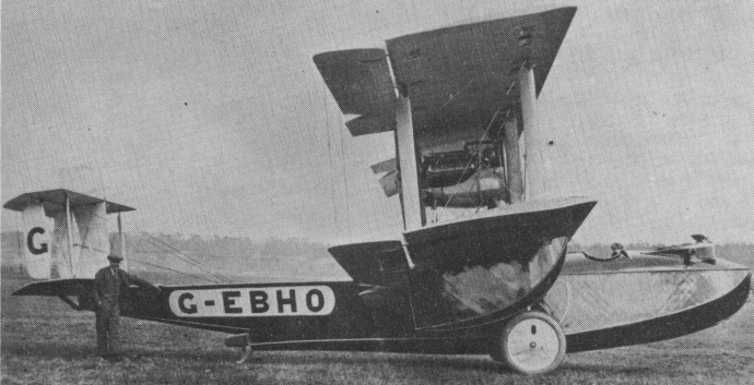 The Vickers Type 95 Vulture, G EBHO, was registered to Vickers Ltd on August 9, 1923. It was a three seat amphibian powered by a single 450 hp Napier Lion and was one of two designed by R. K. Pierson for Sqn Ldr A. C. S. MacLaren’s round the world flight. This attempt began at Calshot on March 25, 1924, and ended with a take off crash at Akyab, Burma.