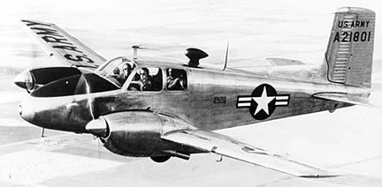 L-23B Engines: 2 x 260 h.p. Lycoming GO-435-17 Span: 45 ft. 3 in. Weight: 5.500 lb. Max. Speed: 202 m.p.h. Sats: 6 Range: 985 miles at 190 m.p.h.