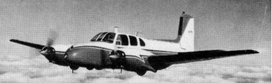 J50 Engines two 340-hp Lycomings. Seats 6-7. Gross Wt. 7300 lbs. Empty Wt. 4460 lbs. Fuel capaci.ty 230 USG. Top speed 235 mph. Cruise 223 mph. Stall 82 mph. Initial climb rate 1270 fpm. Range 1650 sm. Ceiling 29,150 ft. Takeoff distance (50’) 1450 ft. Landing distance (50’) 1840 ft.