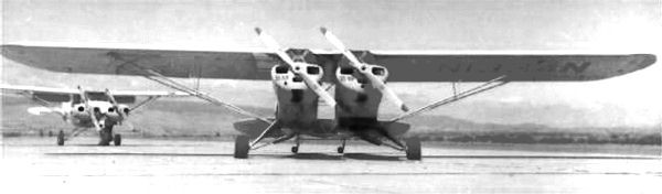 The Mohawk X is similar to the Mohawk except single engined and fitted with flaps. Undercarriage has three wheels in tricycle formation with two addition¬al tailwheels. Engine mounted at wing height driving pusher propeller.