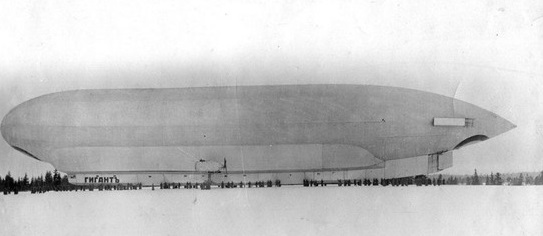 The Gigant was built by engineers A.Kovanko and A.Shabskogo at the Russo-Baltic Wagon Works, Salizi, south-east of St.Petersburg, between 1912 and 1915. It was of 724,060 cu.ft capacity, measuring 374 ft long with a 56 ft diameter, giving a gross lift of 21 tons and a useful lift of 8.8 tons. As originally designed, power was four 215 hp Austro-Daimler eight-cylinder petrol engines, later reduced to two such units mounted in streamlined nacelles positioned amidships above the keel.