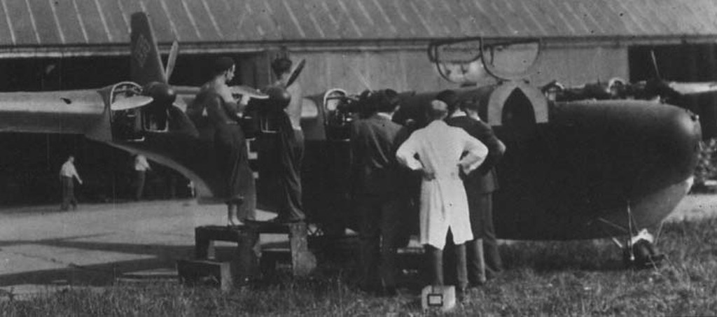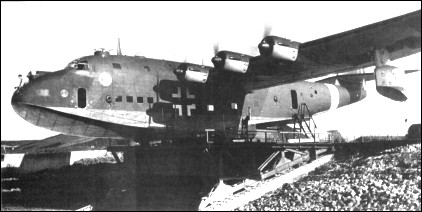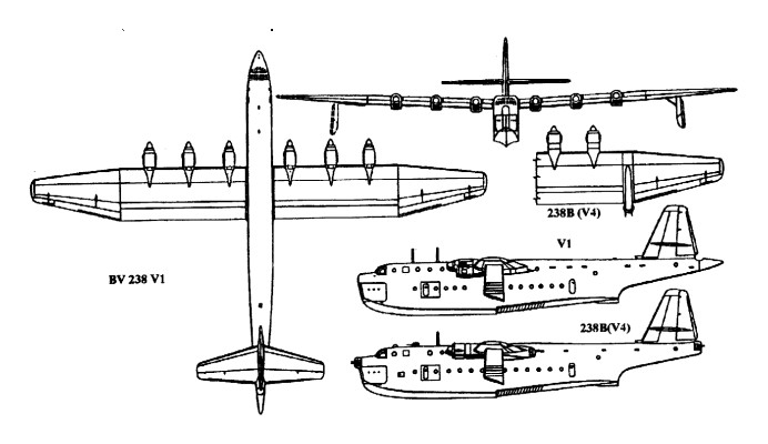 Eight engines were installed in twin pods hung under the 35 degree swept wing, and other unusual features included a vertical tail able to fold sideways to enter a hangar, wingtips that moved downwards 2.5 m (8 ft) as the wing tanks were filled, and four twin wheel landing trucks which can be swivelled for cross wind landings.