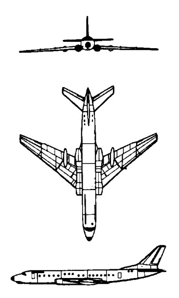 Engines: four 5,000shp Lyulka AL-7P Length: 40.06m Span: 37.5 m Take-off weight: 79,300kg Maximum speed: 1,000km/h Ceiling: 12,000m Range: 3,300km Passengers: 100