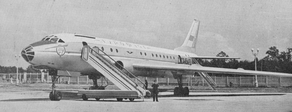 The first Soviet jet airliner was the Tu-104, which utilised the wings, engines, undercarriage and tail unit of the Tu-16 bomber in order to obtain a production jetliner in the minimum possible time. The navigator even had access to a bomber-style glazed nose.