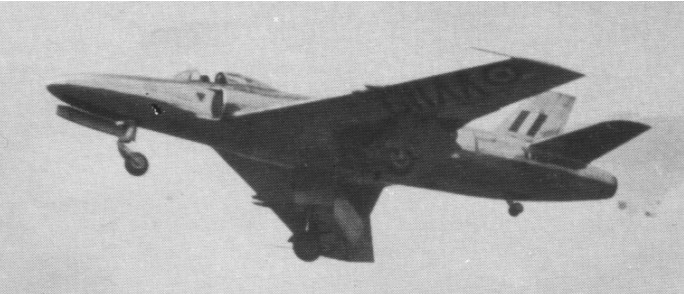 The Swift F.4 had an all-moving tail of increased area which finally cured the Swift’s pitch-up problems, and an afterburning Rolls-Royce Avon.