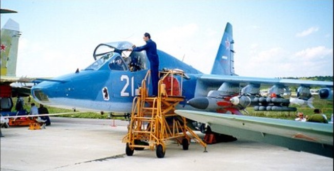 The 1984 upgrade of Su-25 attack plane. Evolution included Su-25T (anti-tank, flew on August 17, 1984), and Su-25TM (modified, flew in 1996). Externally it differs by hunch behind the cockpit and TV sight in the nose.