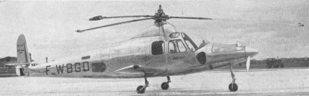The Farfadet single prototype F-WBGD first flew on 8 May 1953. Its maiden flight, lasting about twenty minutes, was made as a true helicopter, the following one, on the same day, with the rotor and the airscrew respectively powered by their individual engines.