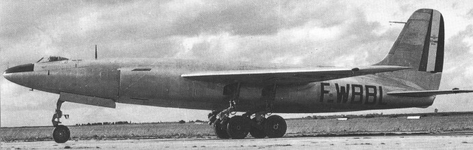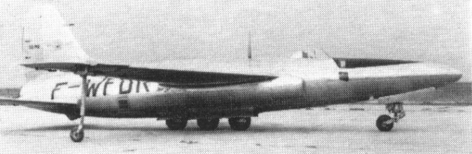 The SO 4000 was developed by the Société Nationale de Constructions Aéronautiques de Sud-Ouest (SNCASO) to meet an Armée de l’Air requirement formulated shortly after WWII for a twin-turbojet bomber capable of high subsonic speeds and having a maximum loaded weight of 25-30 tonnes. The SO 4000 project competed with the NC 270 project tendered by the SNCA du Centre, and after the flight testing of manned scale models, the SNCASO bomber was selected for further development. The half-scale model predecessors of the SO 4000 were the SO M.1 glider (F-WFDJ) and the powered SO M.2 (F-WFDK).