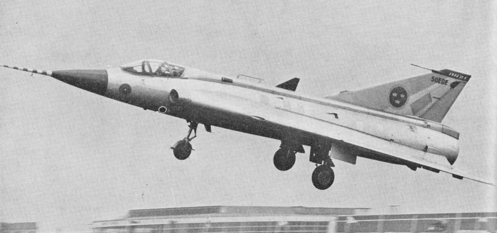 The ‘Mini-Draken’ (otherwise the Saab 210) was completed and first flown on 21 January 1952, with Bengt Olow at the controls, nine months and SKr 1.7 million later. The landing gear was raised hydraulicly, the descent was by gravity.