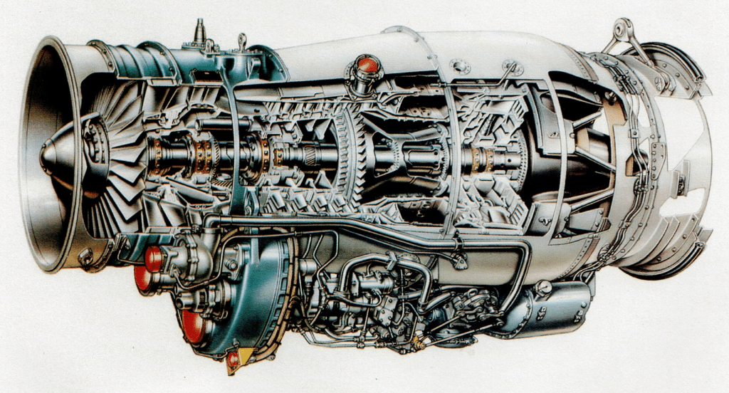 The RB.203, the first three-spool engine, was intended as a civilian replacement for the earlier Rolls-Royce Spey.