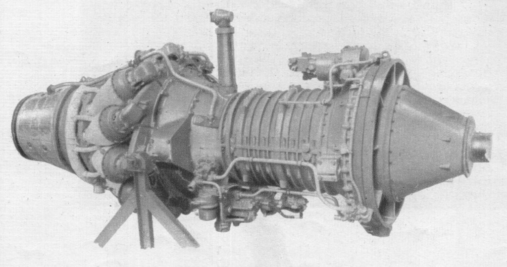 The Clyde was a long engine with the axial LP compressor in front of what was, in effect, a scaled down Derwent engine. Accessories were grouped around the axial compressor which conveniently narrowed towards the rear. Cooling for turbines and turbine bearings came from a small diffuser on the main shaft as well as tappings from the axial and centrifugal compressors. Testing of the development engines exceeded expectations with the engine soon being rated at 4,030 eshp. One problem un-earthed during testing was that damaging resonances emanated from the straight-cut spur gears in the reduction gearbox.