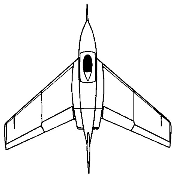 It has a triangular shape or Delta wing, 2.7 m swallow tail. The wing has 72 ° sweep, is 11,250 m² with a wingspan of 5.6 m. This wing has no dihedral. The average profile is a modified NACA the 230000 series. The structure of the wing is built in one piece. The trailing edge has flaps in the central part, equipped with tabs controlled in flight. The control surfaces are statically and dynamically balanced. The structure of the wing, is composed mainly of a working chamber, formed by the assembly of two perpendicular rails and oblique side rails symmetrically joined by two ribs. All wing spars or fins, main or joint, and ribs are made of box spruce (laminated strips) and birch plywood.