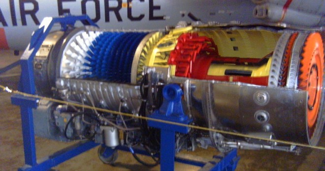 The Westinghouse J46 was an afterburning turbojet engine that was developed to power several United States Navy aircraft in the 1950s. It was intended to power the improved, swept wing, F3D-3 Skyknight (swept-wing version ultimately canceled). It also powered the F2Y Sea Dart and the F7U Cutlass jets, and Walt Arfon’s Wingfoot Express land speed-record car.