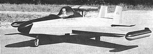 The Whilling PJ-1 is powered by two Gluhareff G8-2-130R pulse-jets. It has a speed of 550 kph with a weight of 300 kg. The two jets are mounted directly behind the pilot.
