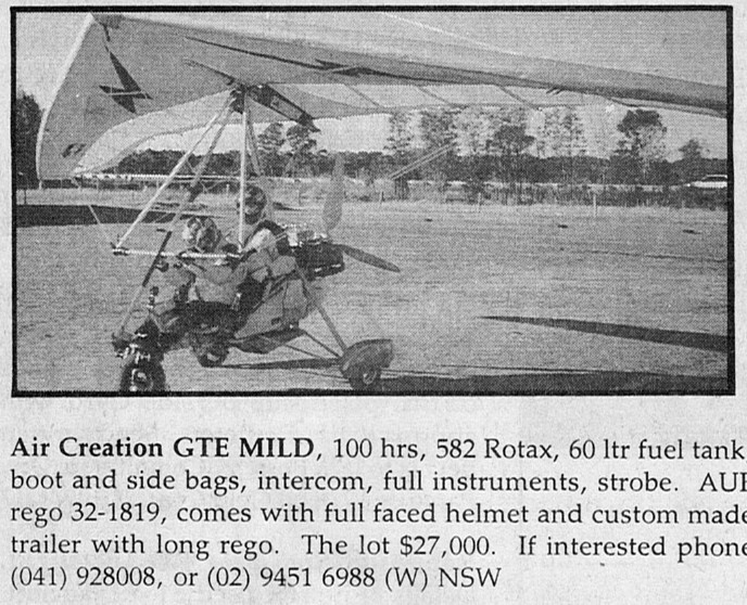This was an ultra-light aircraft which was allotted the registration 19-1309 (c/n 2) by Recreation Aviation Australia (RAA) and appeared on the register from 17 October 1991 to 3 December 2008. It was designed and built by Andrew Shay and was fitted with a Jabiru 1600 four-cylinder engine.