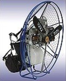 FLY Products Power Gold paramotor has a Simonini 28HP engine and Bing 84 self-adjustable carburetor).