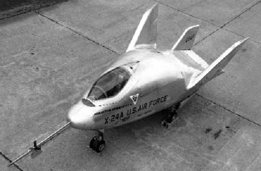 Both vehicles were lifting bodies. They do not use wings to achieve lift, but rely entirely on body shapes to produce lift with as little drag as necessary. What was needed was a type of aerodynamic shaping to cope with the high heat of re entry, while still producing a flying machine that could be control¬led by the pilot. The X 24 flight test programmes proved that the designs were correct.