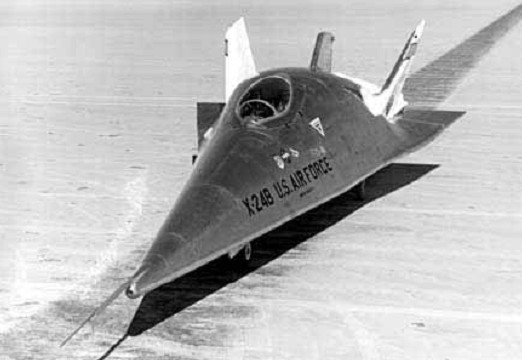 The X 24B had a high lift drag ratio (4.8 at subsonic speeds and 2.5 at hypersonic speeds), and had a landing footprint about double that of the X 24A.
