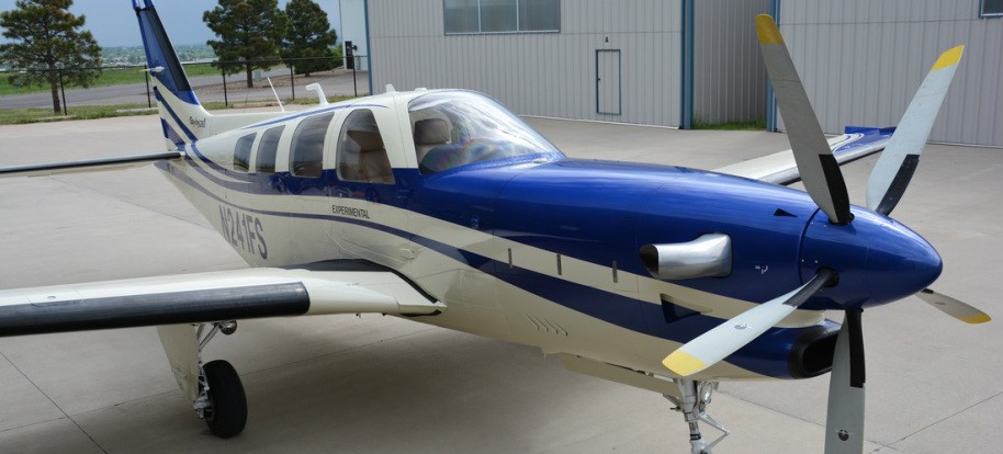 The Model 38P (Pressurized) (also known as the model PD.336) was created during 1981 by installing a Garrett AiResearch TPE-331-9 engine in the nose of a Beechcraft Baron 58P fuselage, which was mated to a Beechcraft B36TC Bonanza wing in place of the Baron’s wing with two engines. This resulted in a low-wing aircraft with six seats including the pilot’s.