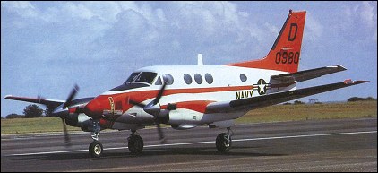 In 1976 the Naval Air Systems Command selected Beech win¬ner of an industry, competition for a three year pur¬chase of new multi engine training aircraft for Naval aviators. The Navy selected an aircraft that combined features of the C90 and E90, designated T 44A. The aircraft is powered by two 550 shp PT6A-34B turbo-prop engines. A total of 15 aircraft purchased by the Navy are to replace piston engine powered TS 2A and TS 2B trainers.
