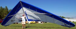 A 1986 hang glider for intermediate pilots. The trademark of the Super Sport is its lack of yaw stability. It is a bit much for newer pilots as it displays a lot of adverse yaw. No VG.