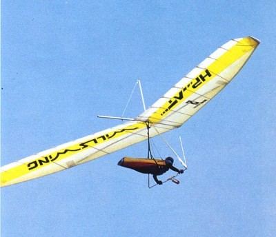 HP 170 1984 Wing area: 15.86 m² Hang glider weight: 31 kg Minimum pilot weight: 68 kg Maximum pilot weight: 113 kg