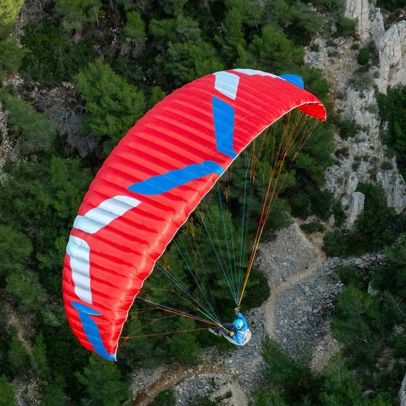 The 2025 Spyder 4 is the lightweight version of the Roadster 4. It uses a carefully selected blend of lightweight fabrics for the main surfaces and ribs, along with an optimised internal construction, reducing both sail weight and packing volume. Using lightweight fabric in a paramotor wing has positive effects all around, the main advantages are faster inflation for easier launches, improved handling, a more agile and responsive feel, as well as enhanced passive safety thanks to reduced sail inertia.