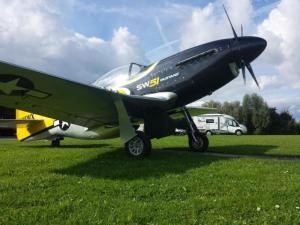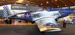 Designed by Peter Funk, the SW51 Mustang 70% scale version of the P-51, is a of all-composite carbon-fiber/honeycomb construction. The material is stained to look like aluminum.