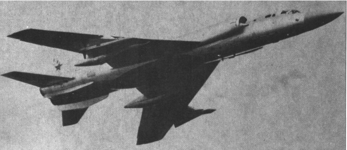 The Tu-88 entered service service in 1954/55 as the Tu-16 series in for a number of missile-carrier and reconnaissance roles. NATO code name ‘Badger’, the Tu 16 was notable in having only two engines, mounted on the sides of the fuselage inside the roots of the swept wing. The mid-set wings, sweptback at 40 deg 30 sec on the inner sections and at 37 deg 30 sec on the outer panels, and with slight anhedral. Bogie main landing gears fold backwards into compartments in streamlined fairings on the trailing edge.