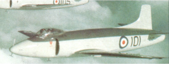 The undercarriage was also taken from the Spiteful. The wing retained the Spiteful’s four cannon armament but the radiators for its Griffon piston engine were removed and replaced by fuel tanks.