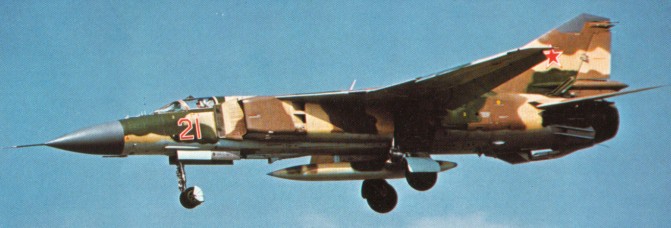 The MiG-23MF, known to NATO as ‘Flogger-C’, differs from other versions by having a shorter dorsal fin, new sensors and a lighter radar.