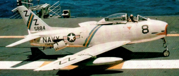 This fighter/bomber equipped 17 navy and four marine squadrons, and VF 21 in January 1956 became the first combat unit to embark aboard the super carrier Forrestal. (The first FJ 3 unit at sea was VF 173, aboard Bennington, in May 1955.)